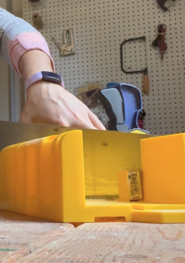 Once you know your frame lengths and widths, it’s time to cut your wood boards to size AND make them angled (or mitered) at the tips so they join at a 45 degree angle. This really makes your frame look professional and absolutely beautiful. To do this, you can opt for a miter box or a miter saw to do the work.