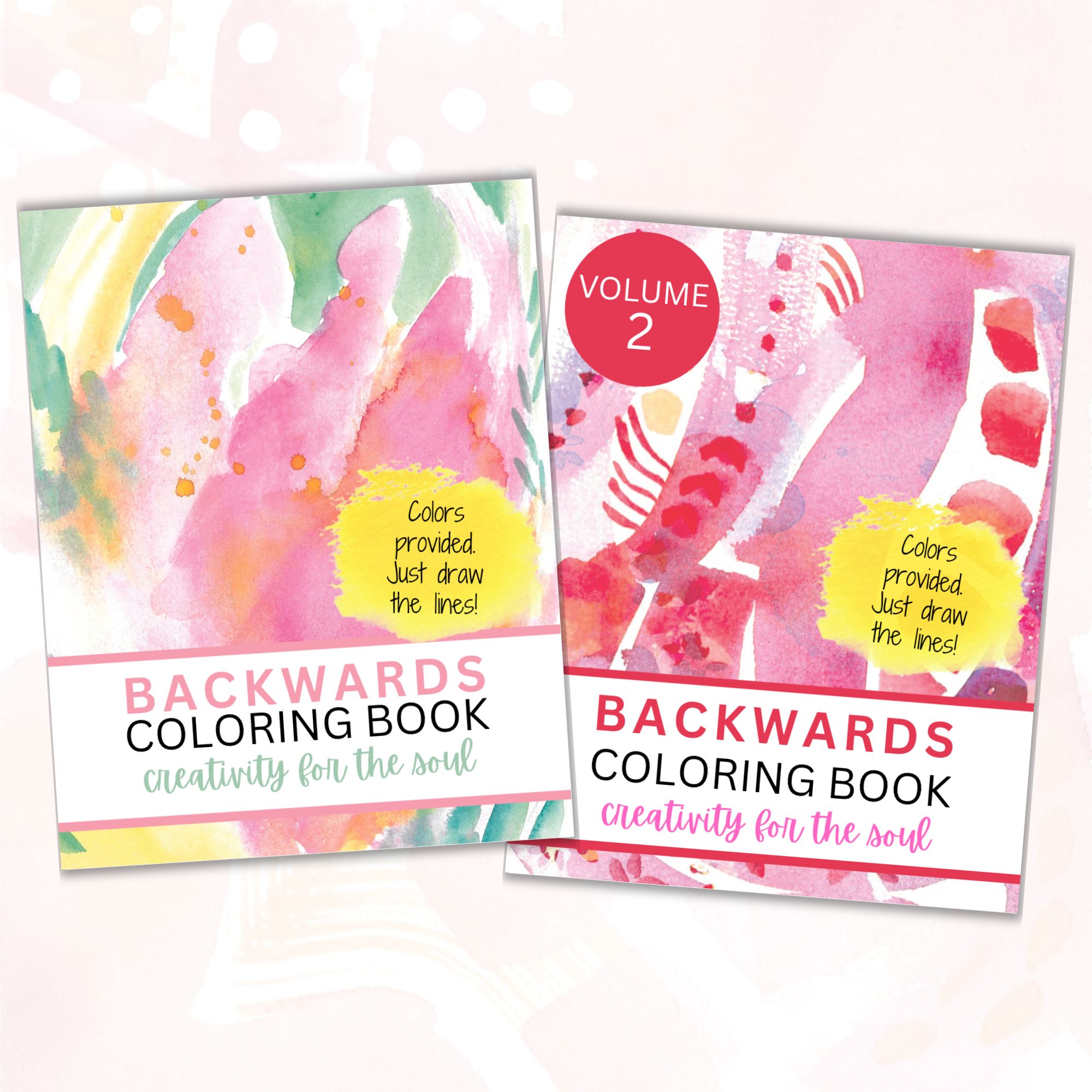 A DOWNLOADABLE Backwards coloring book featuring 80 pages of high resolution colorful paintings – simply draw the lines and doodle away the art block!